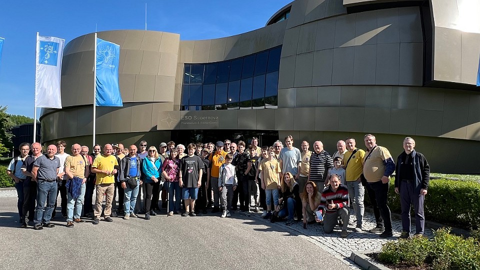 3 Společné foto účastníků zájezdu před hlavní budovou ESO. - středa, 14. května