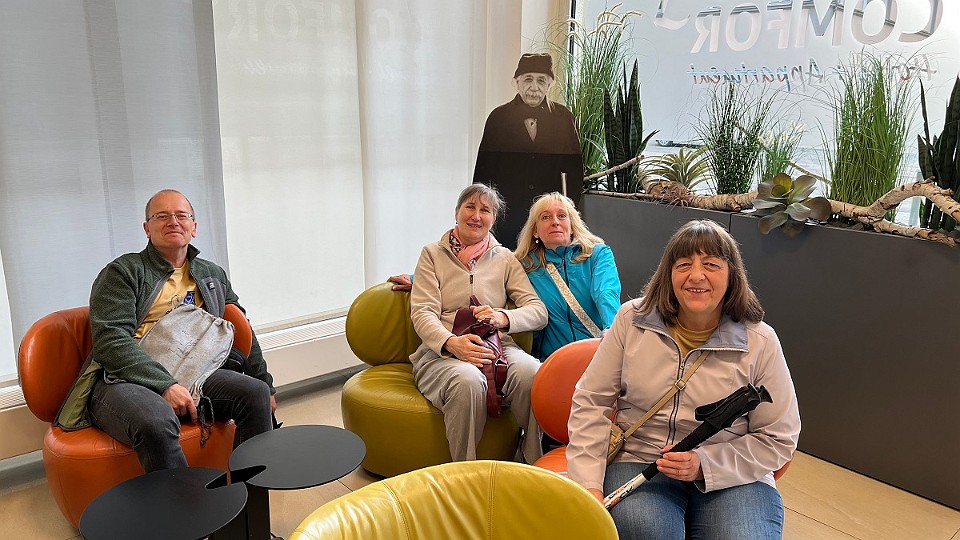 38 Společné foto s velikánem, který se v Ulmu narodil (Láďa Šmelcer, Aďa Mlynská, Lenka Mořkovská, Hana Janatová). - čtvrtek, 15. května