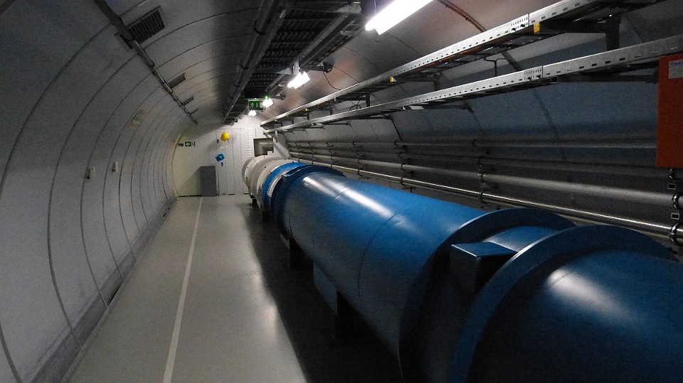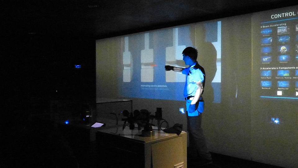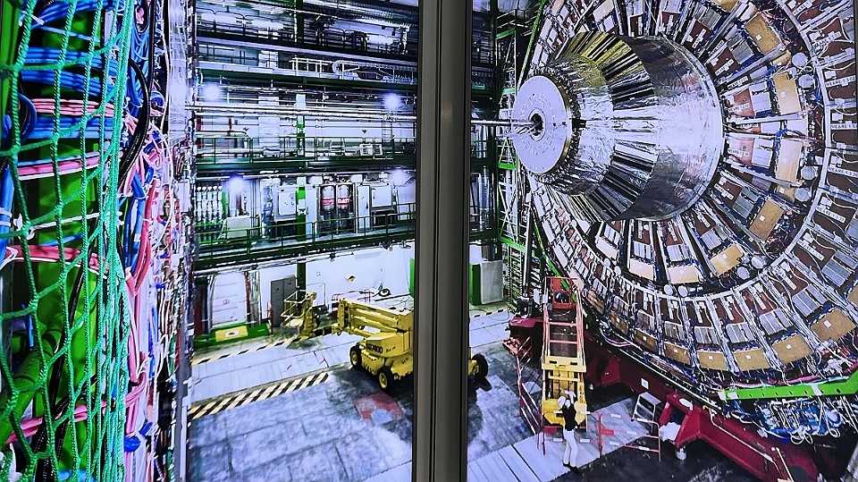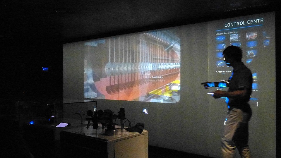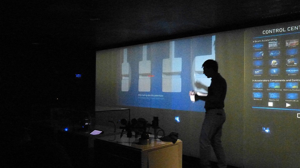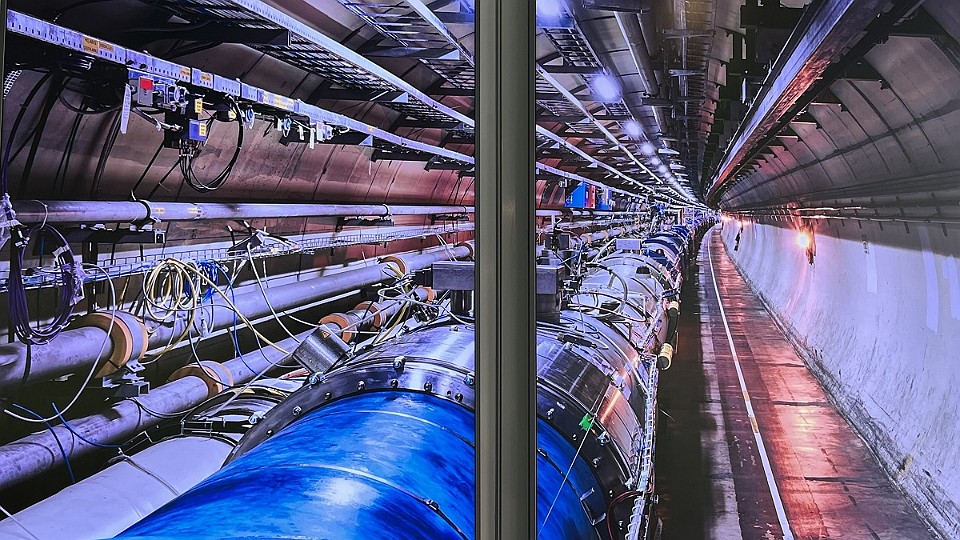 71 Vizualizace svazkové komory (ve které „letí“ protony) a detektoru vznikajícího záření po srážkách protonů. - čtvrtek, 15. května
