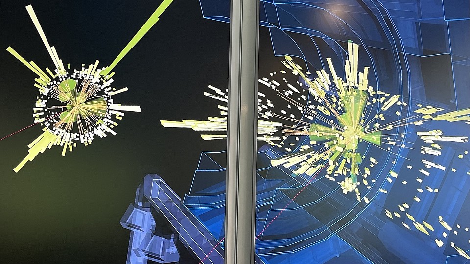 72 Vizualizace srážky protonů a vznikajícího záření a které různé detektory zachycují. - čtvrtek, 15. května