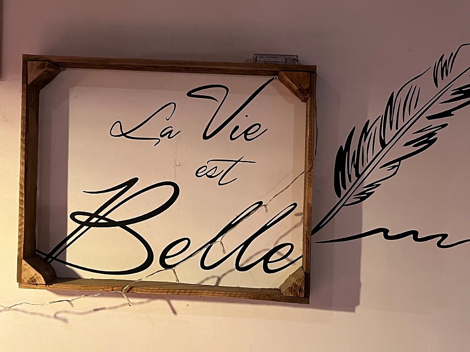 94 Život je krásný - nápis v restauraci. - čtvrtek, 15. května
