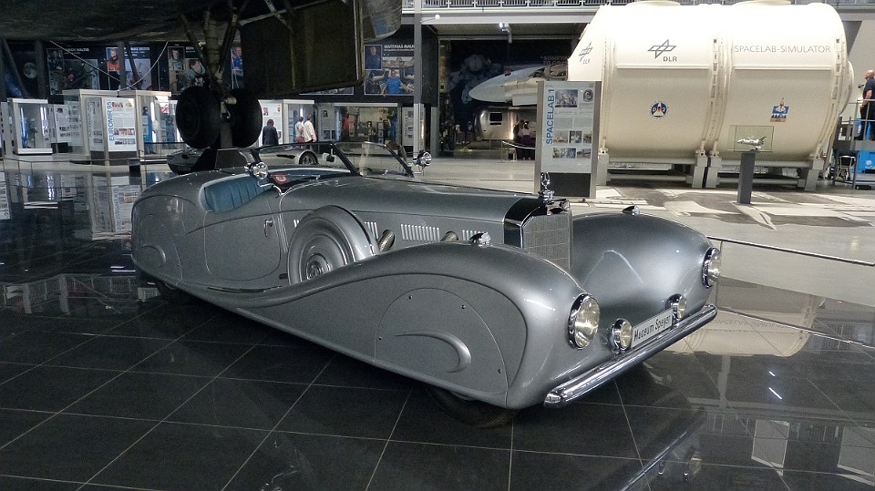 191 Muzeum opouštíme opět přehlídkou luxusních automobilů (Mercedes Benz 500K z roku 1936 má elegantní aerodynamický tvar). - sobota, 17. května