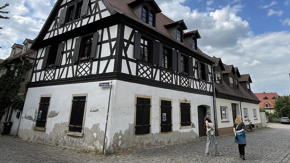 202 Aďa a Lenka jdou hledat kavárnu, hrázděný dům v centru města. - sobota, 17. května