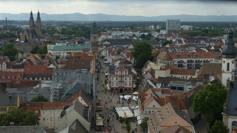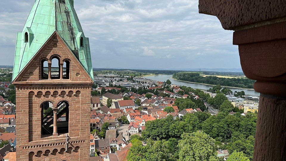 212 Pohled z věže na střed města a rameno Rýna. - sobota, 17. května