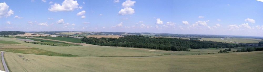 4 Panoramatický výhled z rozhledny směrem na Bílovec a na nově stavěnou dálnici. |