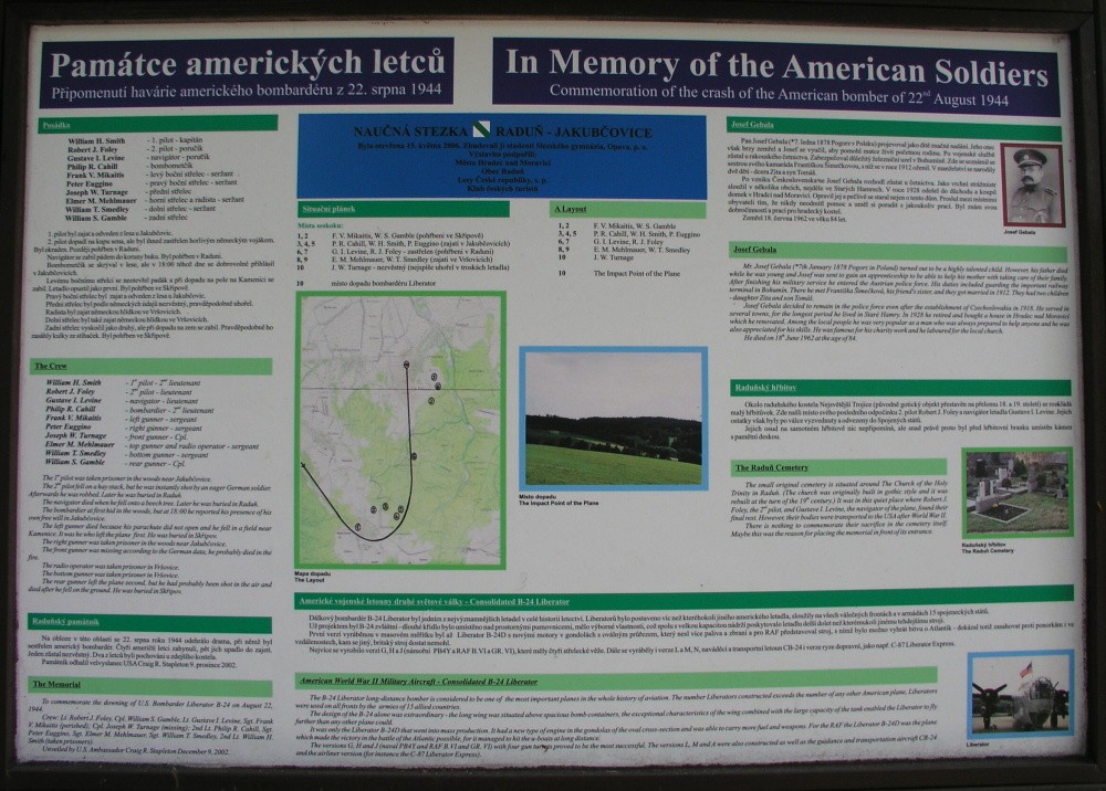 9 Pamětní tabule u Jakubčovic připomínající havárii amerického bombardéru z 22. srpna 1944. |