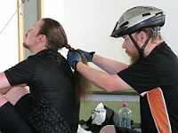 128 Před startem etapy je důležitá úprava účesu kvůli aerodynamice. |