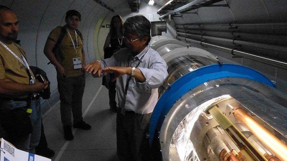 71 Vizualizace svazkové komory (ve které „letí“ protony) a detektoru vznikajícího záření po srážkách protonů. - čtvrtek, 15. května